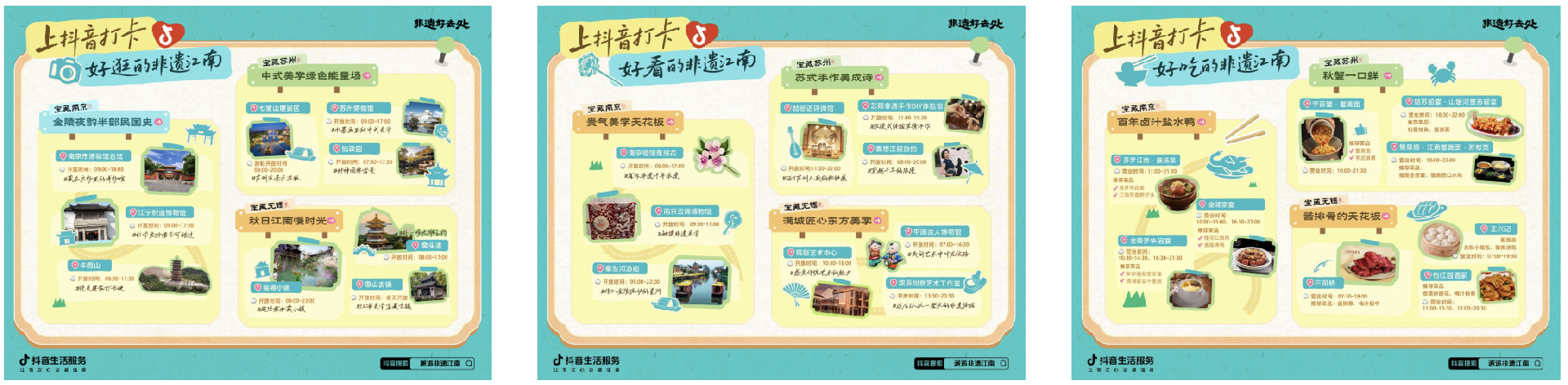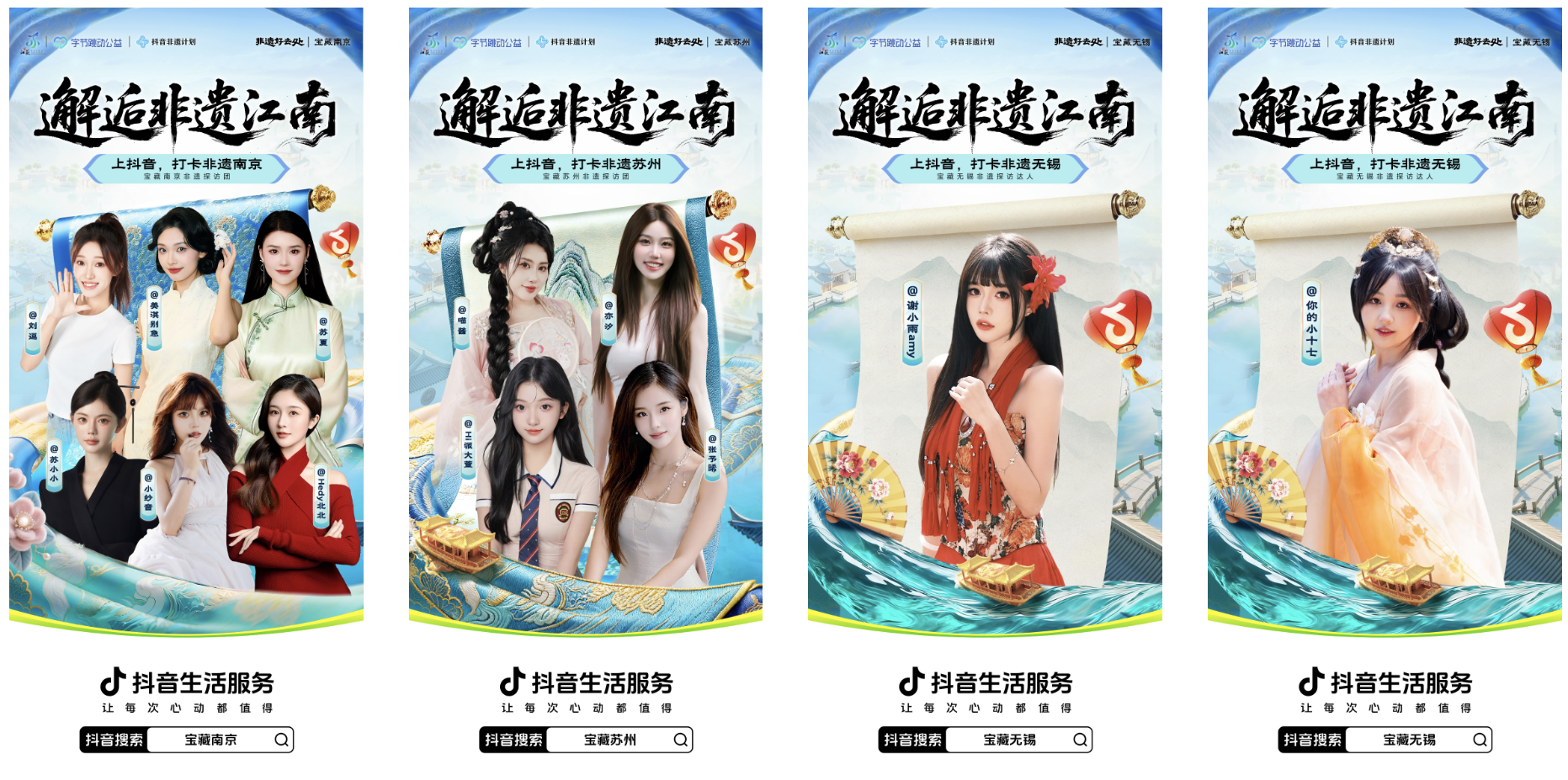 国庆出行热潮将至,消费者对非遗深度体验与潮流互动的需求持续升级。字节跳动公益及抖音生活服务联合发起的“非遗好去处”非遗+旅游推广项目,通过抖音生活服务的产品、技术技艺数字生态,打造城市旅游的非遗名片,让非遗旅游更好的发挥为民、富民、利民、乐民重要作用。项目于8月中在江苏启动“水韵江苏·精彩非遗”主题活动,以抖音生活服务「邂逅非遗江南」超级IP,通过“城市×非遗品类”核心策略,联动南京、苏州、无锡三地文旅资源,整合非遗传承者、明星达人及老字号品牌矩阵力量,构建起“内容种草+场景体验+消费转化”的全链路营销体系。